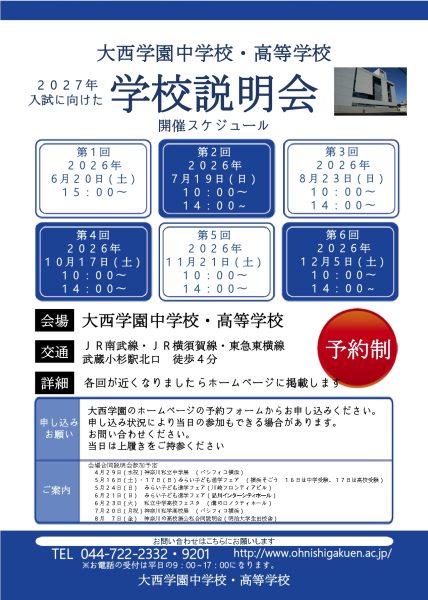 2027年度入学向けです。各説明会の予約については各回が近くなりましたらホームページに掲載します