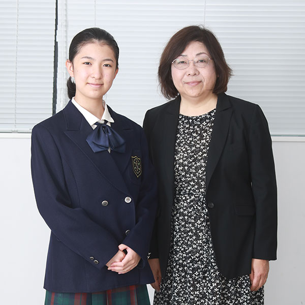 大西学園はみんな仲がよく、優しい心が育まれる学校だと感じています。先生方はいつでも気軽に声をかけてくださって、勉強のことだけでなく、趣味の話をしたり、悩みを相談することもあります。また、検定試験に力を入れているので、気が引き締まり、すべてに目標を持って取り組むことができるようになりました。きれいな校舎で居心地もよく、部活動も充実しています。私は合唱部と美術部を兼部して、先輩や後輩とも交流を深めながら活動しています。学園祭もとっても楽しいです。今後も中高一買生としての自覚を持ち、学校生活の中心となってみんなを引っ張っていけるような存在になりたいと思っています。